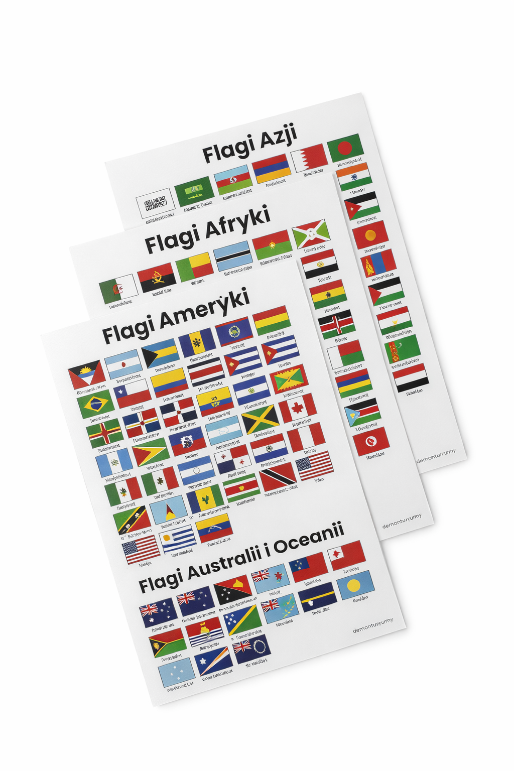 - Naklejki z flagami – arkusz naklejek do oznaczania odwiedzonych krajów w dedykowanych miejscach dziennika.